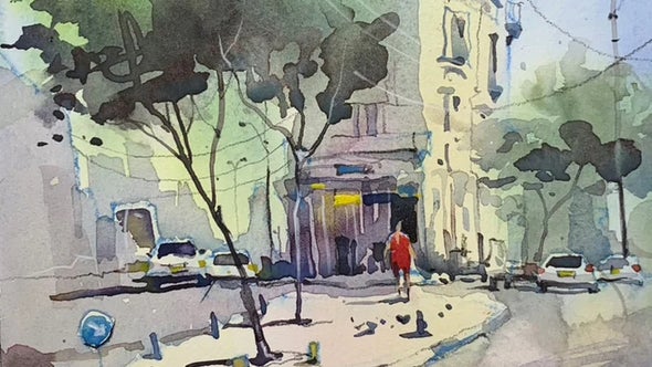 Irena Spector guides you through painting quiet morning cityscapes using watercolour and watercolour pencils to build softness, depth, and mood.